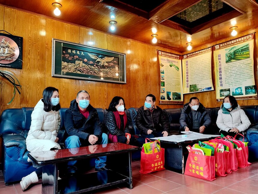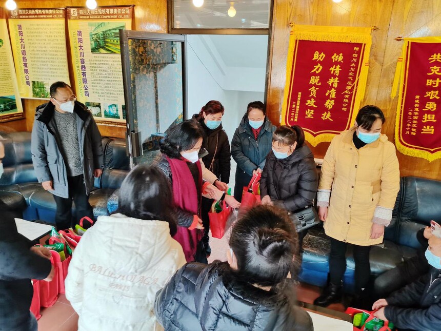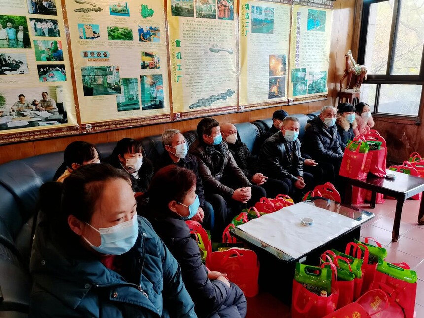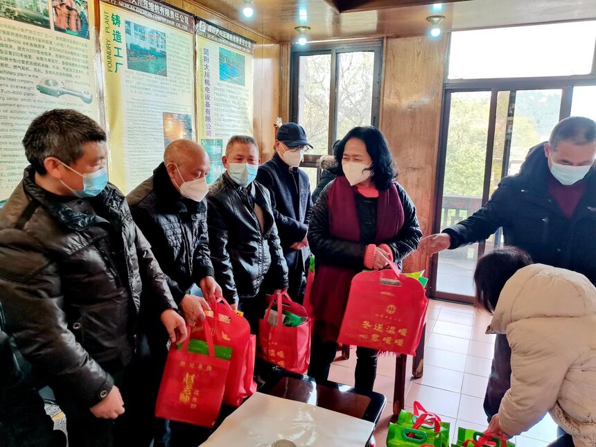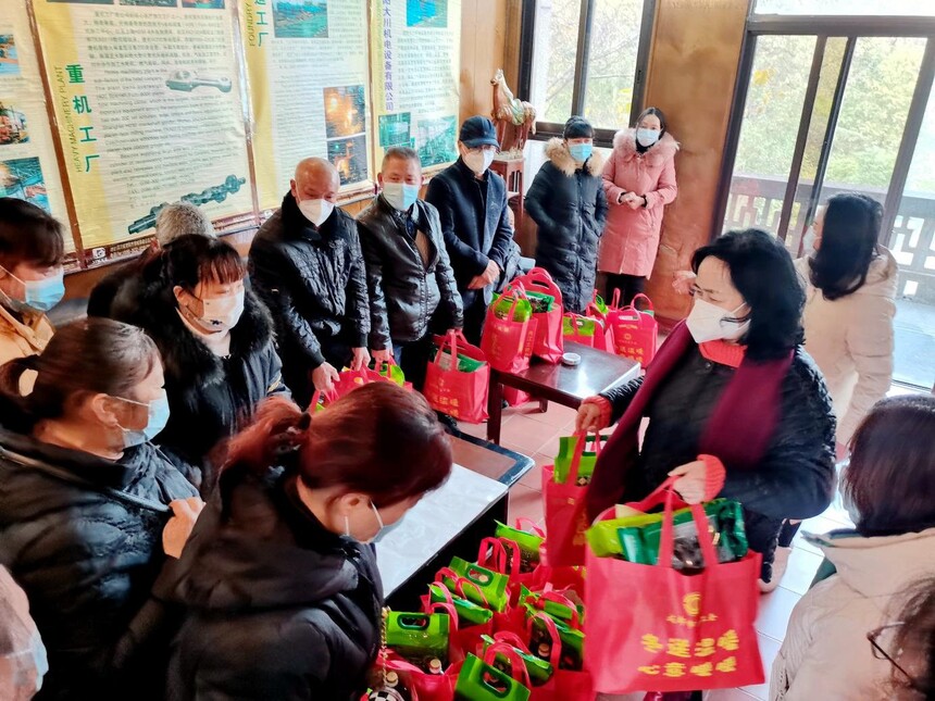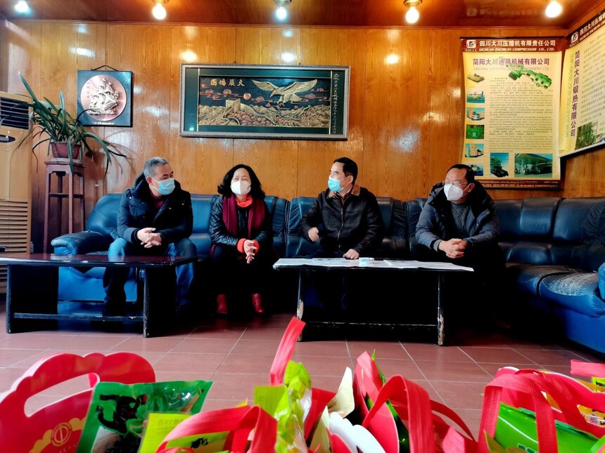 2023年1月12日,成都市总工党组副书记、副主席、二级巡视员刘耘芸主席以及装备制造工会常务副主席陈军一行来公司慰问全体职工,公司董事长罗解忠、党委副书记杨晓岚、副总经理马怀元、工会主席黄莉、和部分职工代表参加慰问仪式。